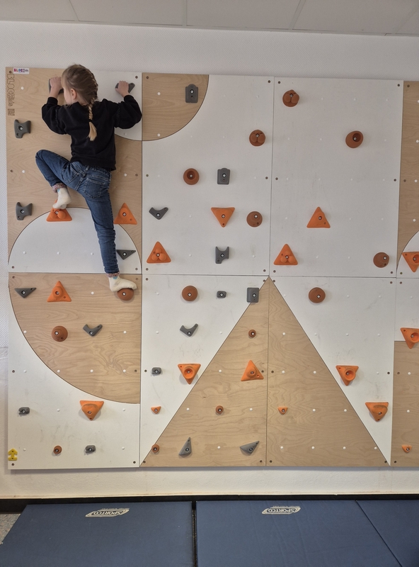 Die Offene Ganztagsschule (OGS) freut sich über eine neue Attraktion: Eine moderne Boulderwand bereichert ab sofort das Bewegungsangebot für die Kinder. Mit großer Begeisterung wurde die Wand in Betrieb genommen.
