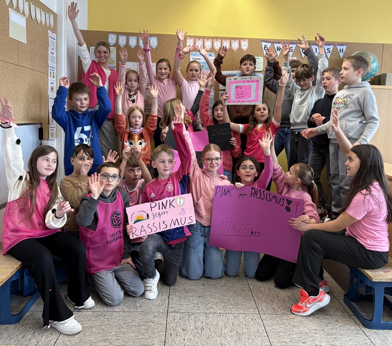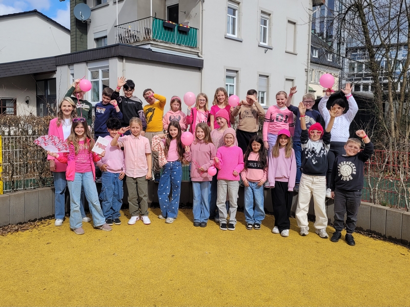 Im Zeitraum vom 16.03 – 27.03.2026 fand die jährliche Aktion „Pink gegen Rassismus“ statt. Die gesamte Sonnenschule nahm daran teil und setzte so ein sichtbares Zeichen für Offenheit und Toleranz. Im Sportunterricht, bei Wanderungen und auch im privaten Bereich sammelten alle Kilometer – so pink gekleidet wie möglich!